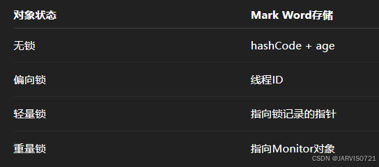 因此Mark Word是一个动态结构,随着对象在JVM运行过程中运行时状态改变,存储不同的数据信息。