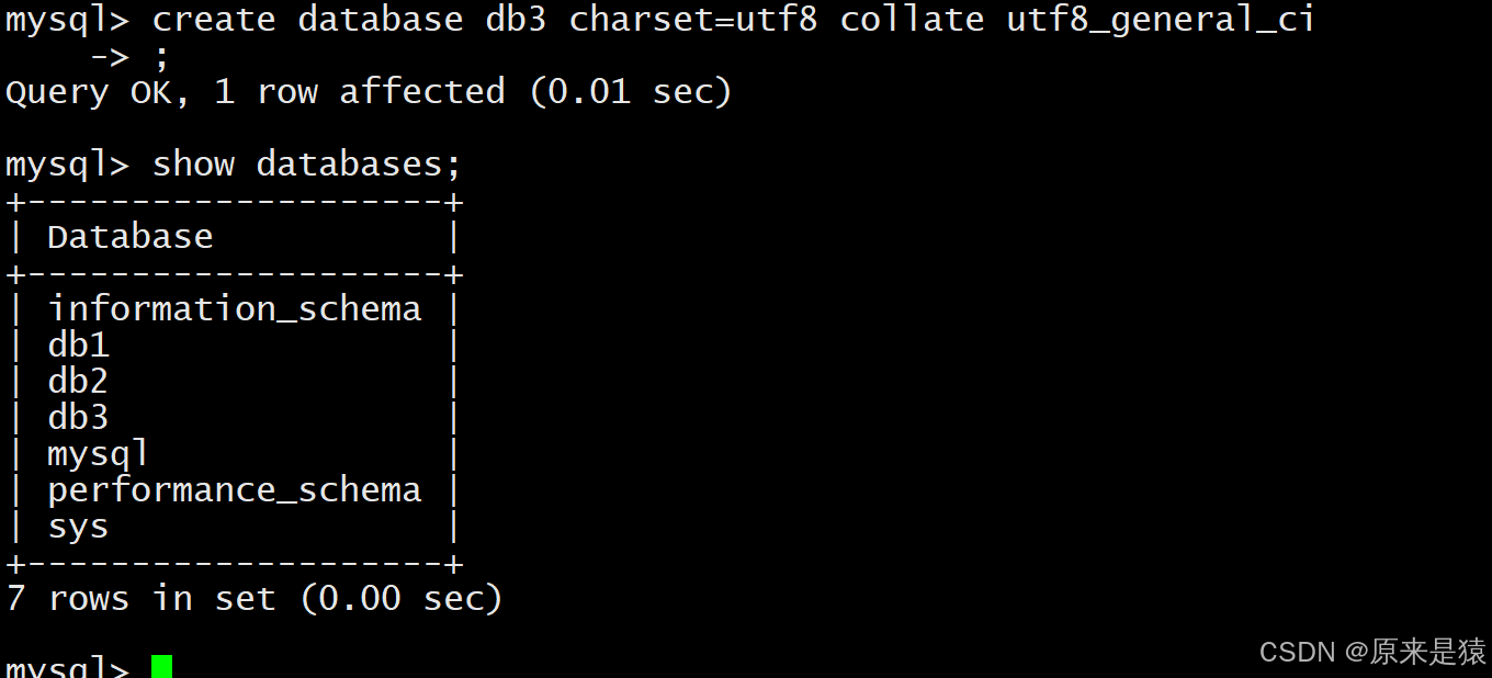 create database db3 charset=utf8 collate utf8_general_ci;