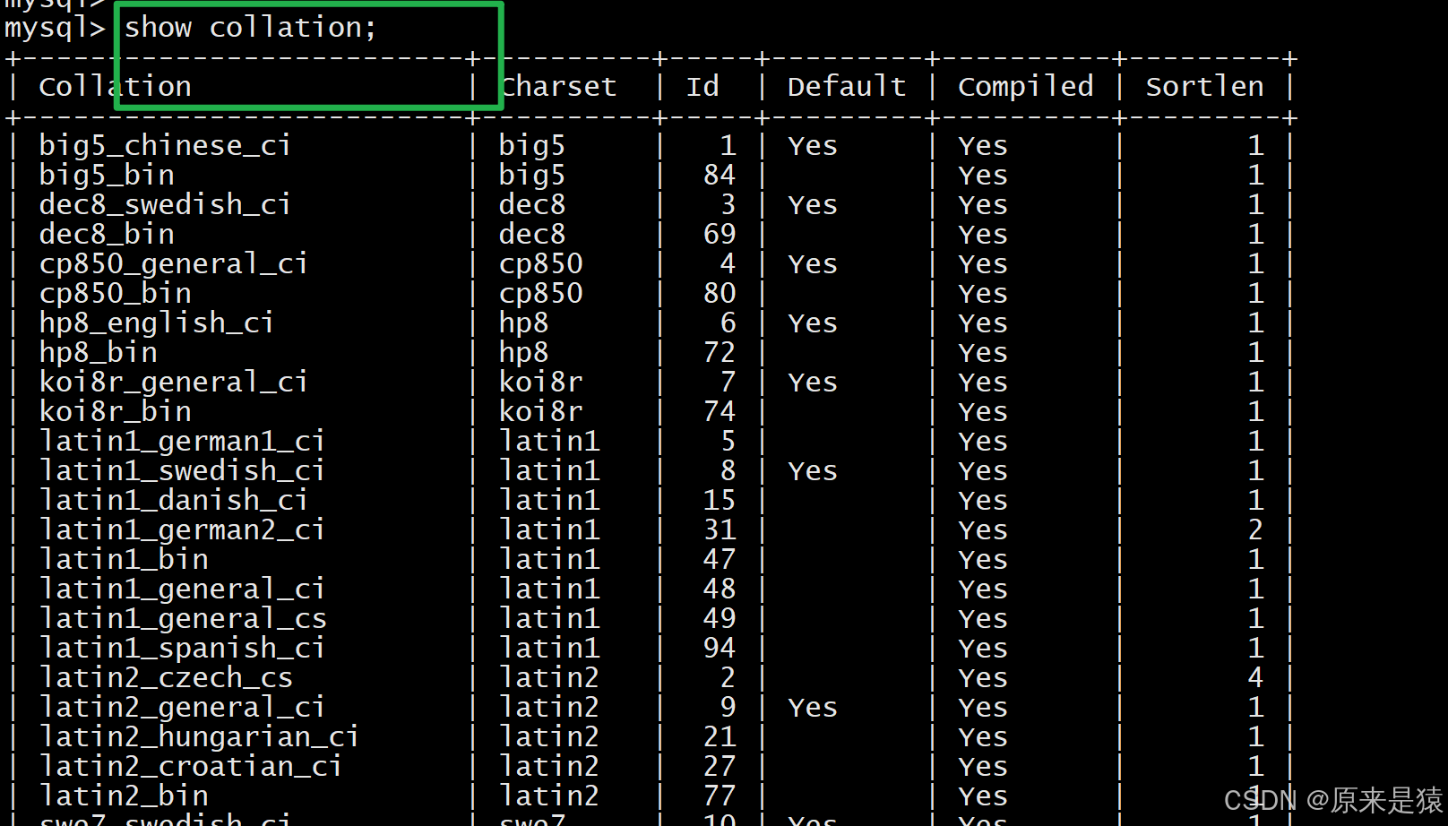 show collation;