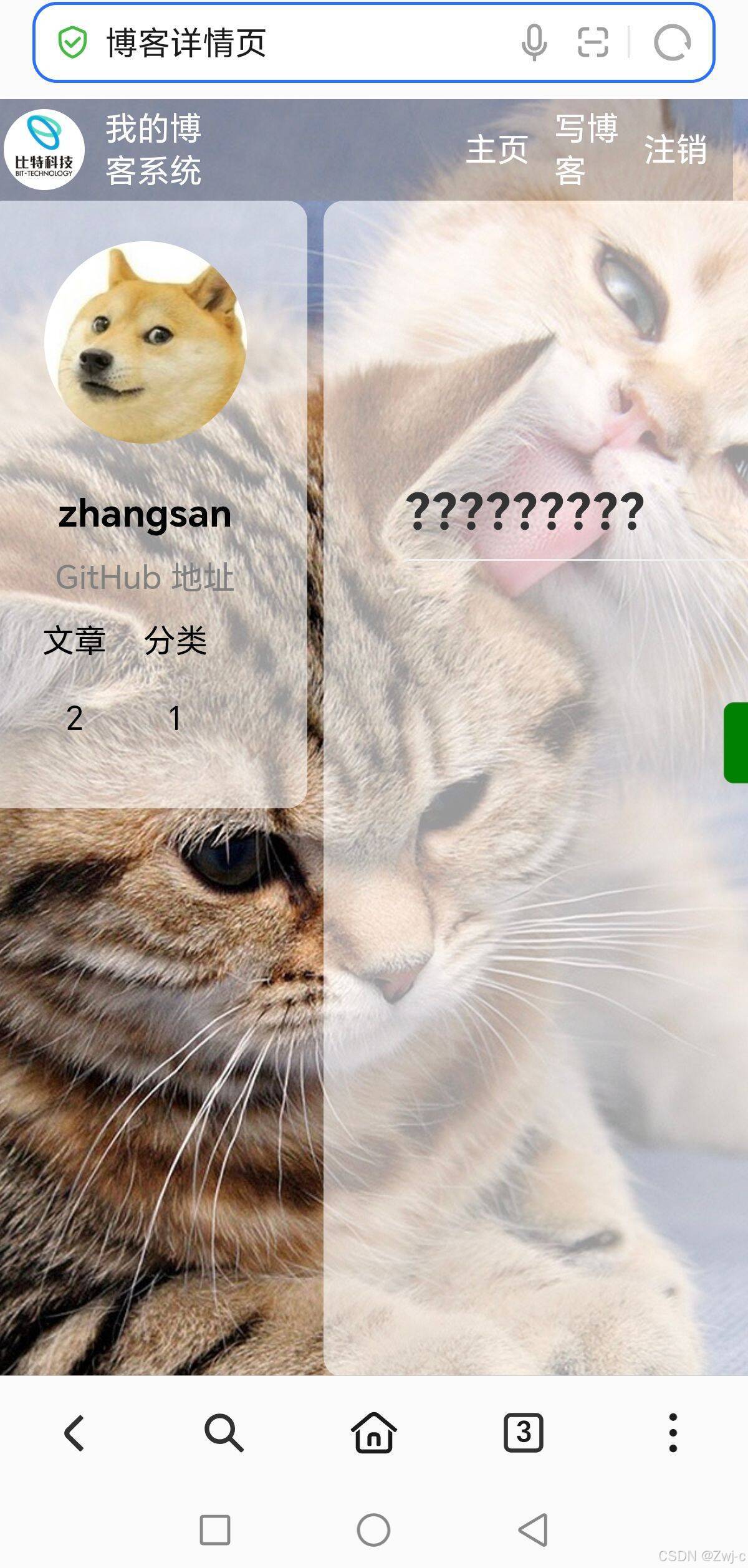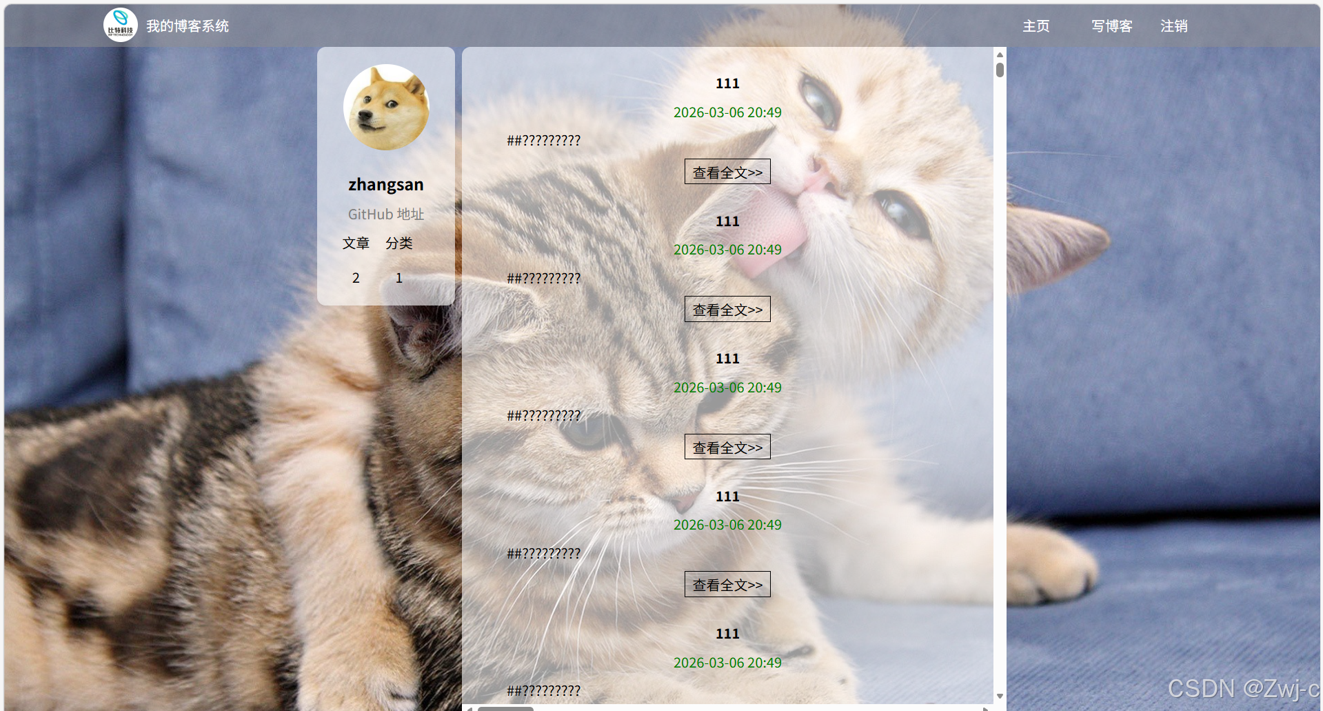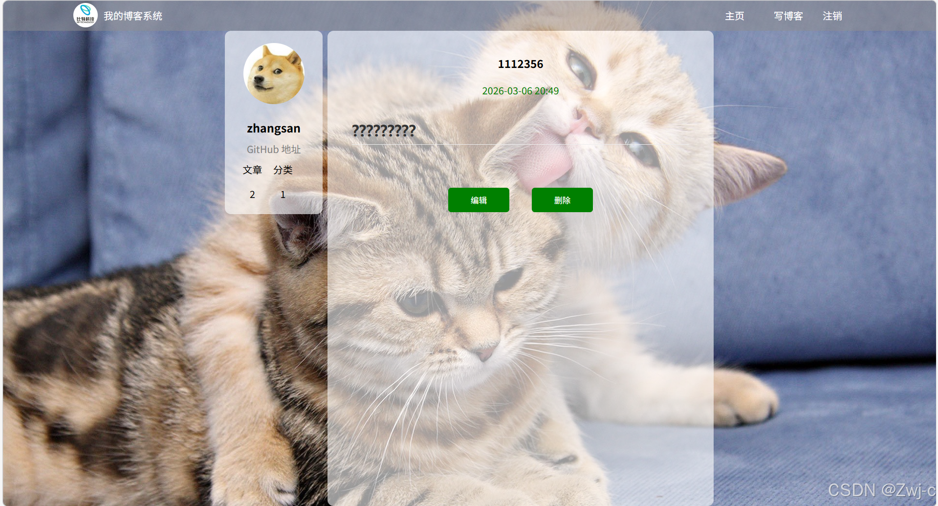 # 如果正常发布博客成功,则会返回博客首页,此时会出现个人信息。