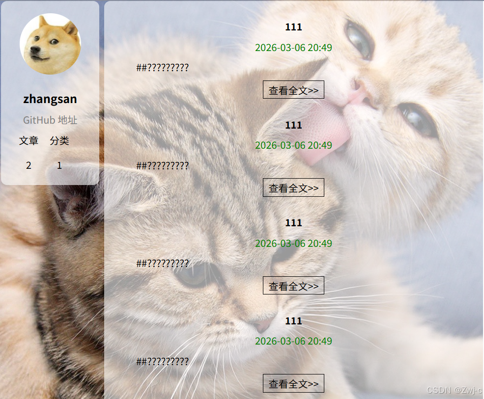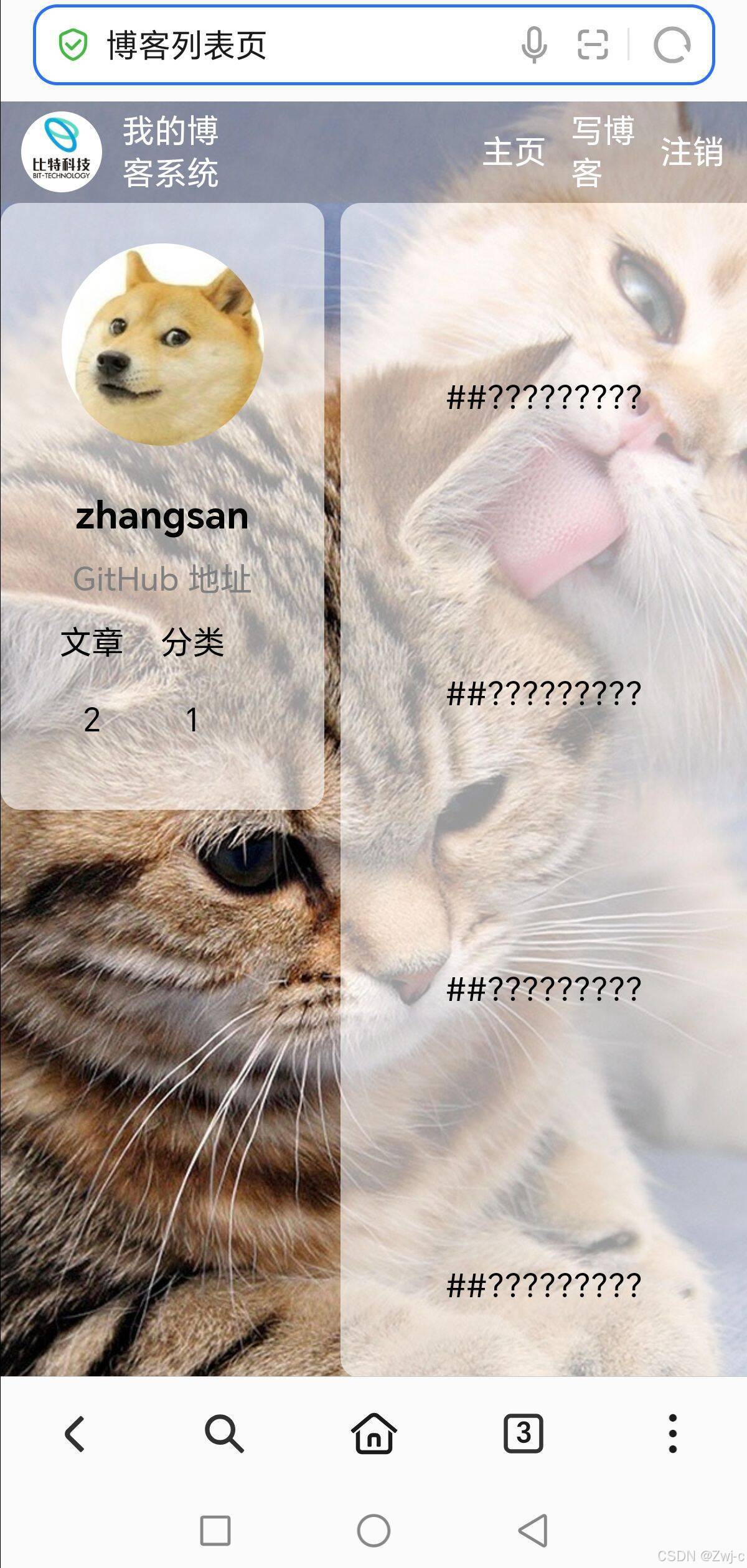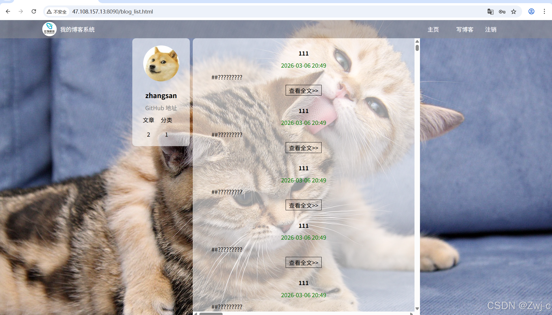 # 如果正常发布博客成功,则会返回博客首页,此时会出现个人信息。