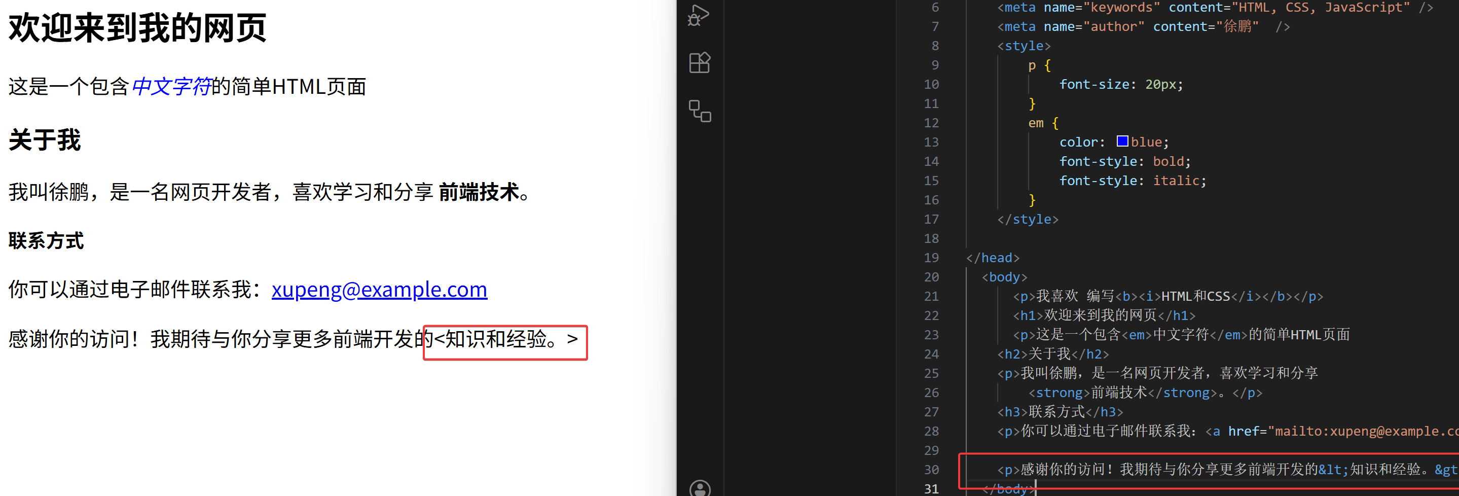 如果在这时候我们需要进行我教 <html>的时候需要特别注意在Html的标签中需要使用 < 和 > 来进行指代,否则会出现错误的结果。
