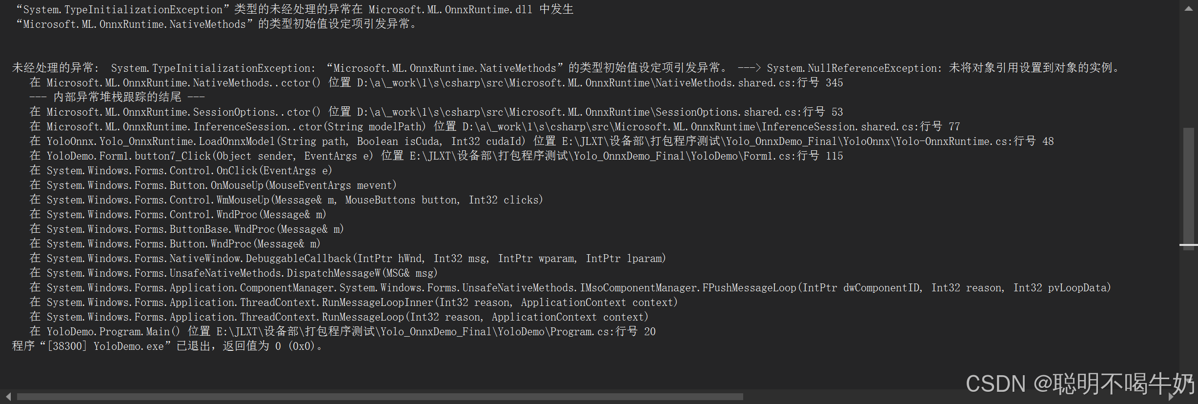 System.TypeInitializationException: "Microsoft.ML.OnnxRuntime.NativeMethods"的类型初始值设定项引发异常。- 内部异常: