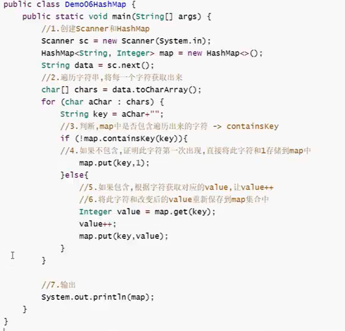 需求:用Map集合统计字符串中每一个字符出现的次数