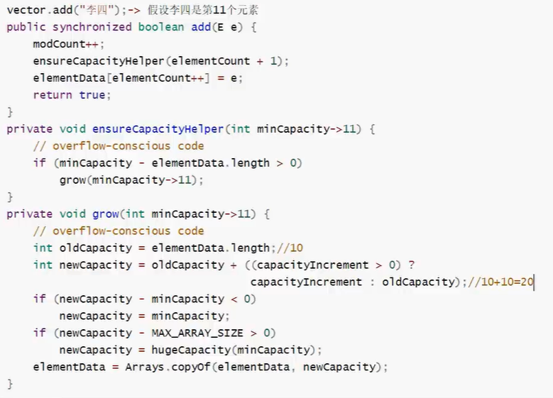 b.如果用有参构造对象,如果超出范围,扩的是老数组长度+指定的容量增强