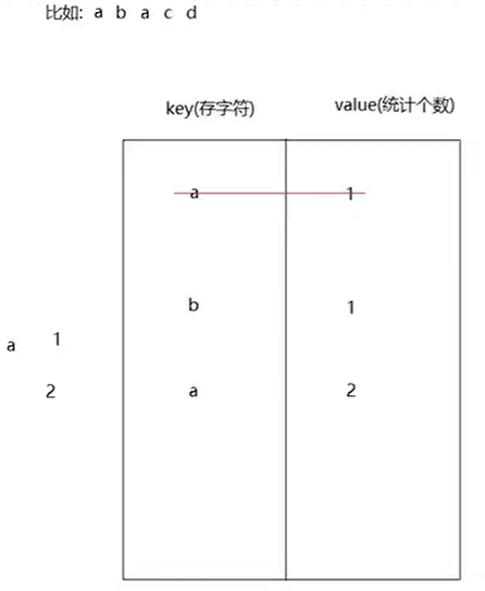 4.如果不包含,证明此字符第一次出现,直接将此字符和1存储到map中