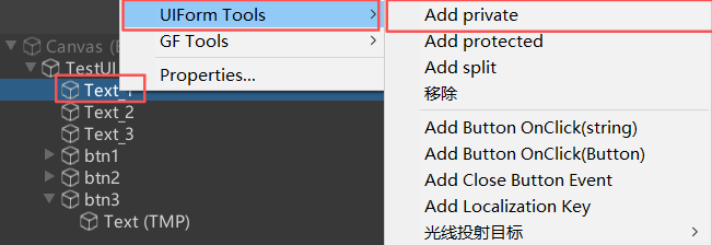 右键想要添加变量的组件,然后选择UIFormTools,然后选择Add split,选择想要生成的类型