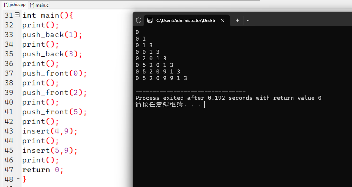 void insert(int ret,int x){//在数组的任意位置插入元素【ret是索引,x是准备插入的元素值】