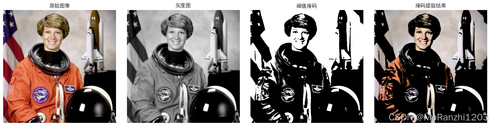 在实际中,掩码往往由阈值处理得到。也就是说,二值图本身就可以直接作为掩码使用。