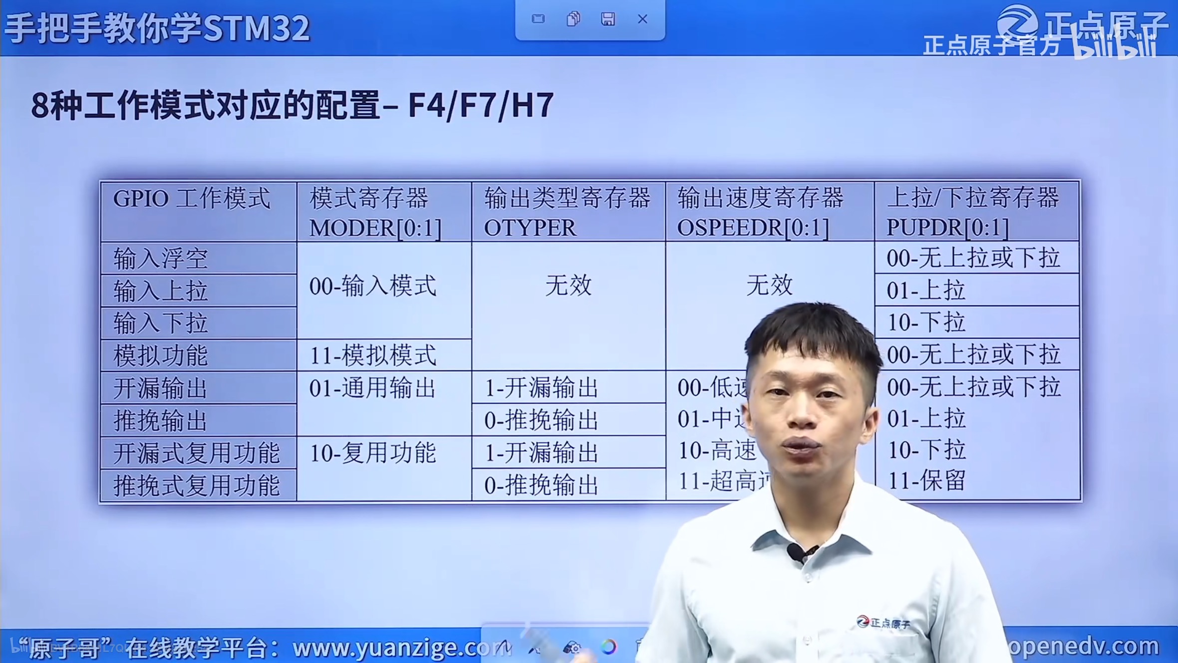 这是个32位寄存器,每2位控制一个引脚(共16个引脚),每个引脚可以配置4种I/O模式