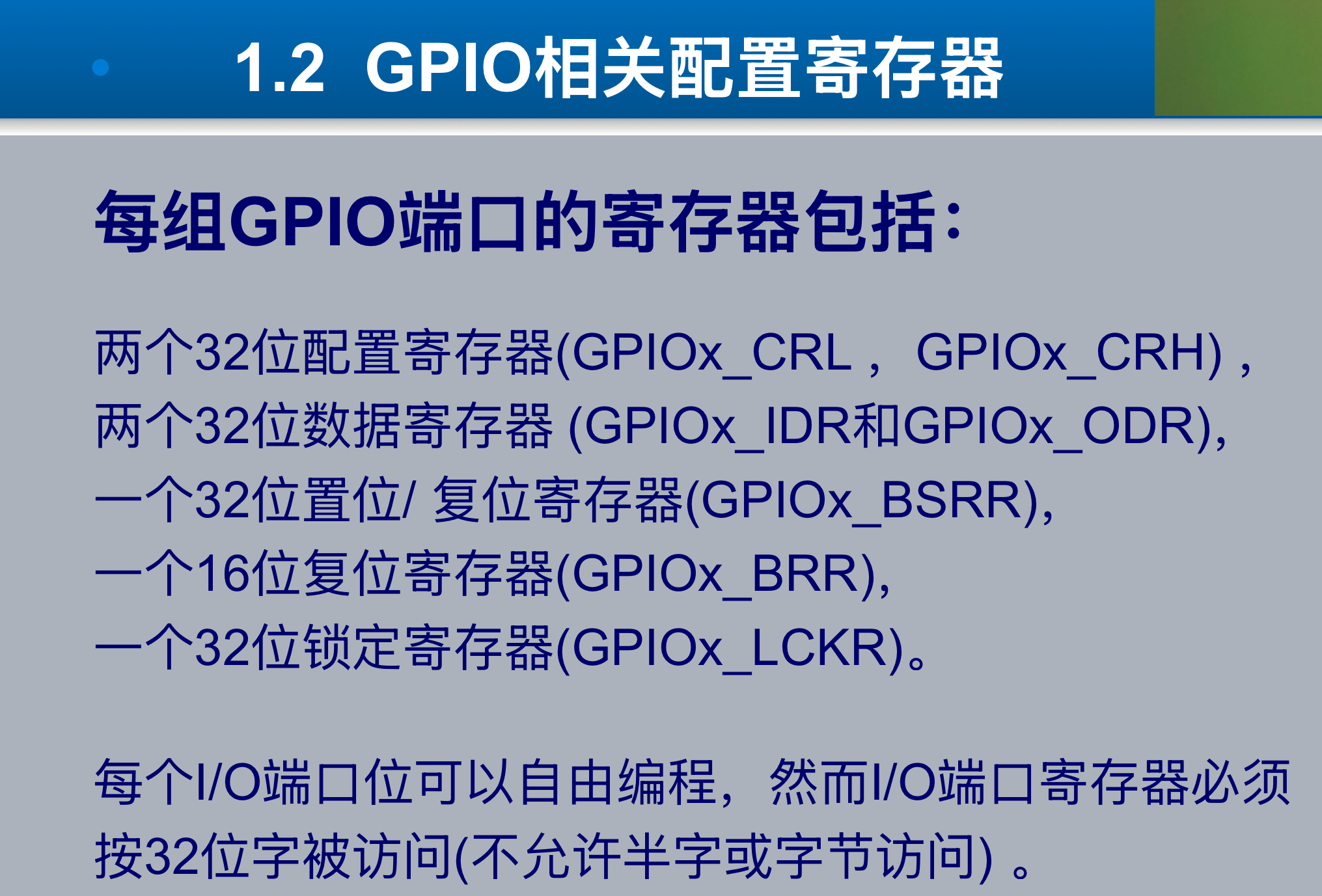 1、F1系列的每组 I/O 口含有下面7个寄存器: