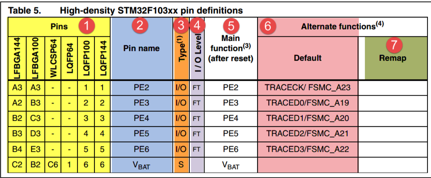 ①引脚序号: 阿拉伯数字表示 LQFP 封装,英文字母开头的表示 BGA 封装。