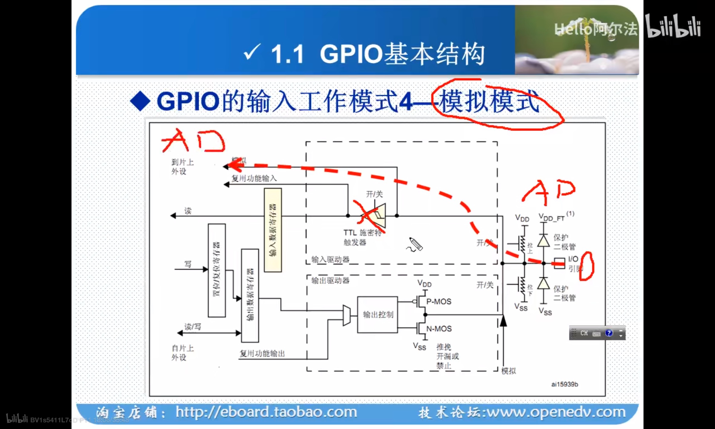 输入上拉模式和输入下拉模式区别只在上拉/下拉部分(接VDD还是接地)