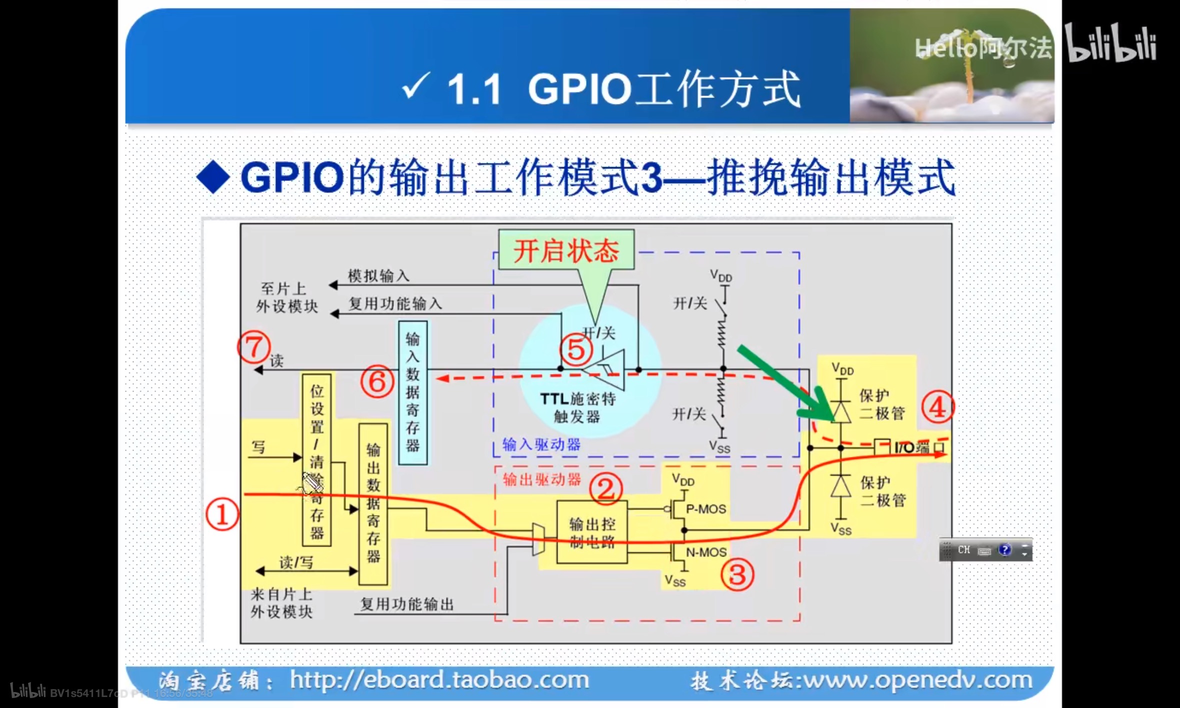 ODR寄存器对应位写0时,N MOS管导通,IO口输出强低电平