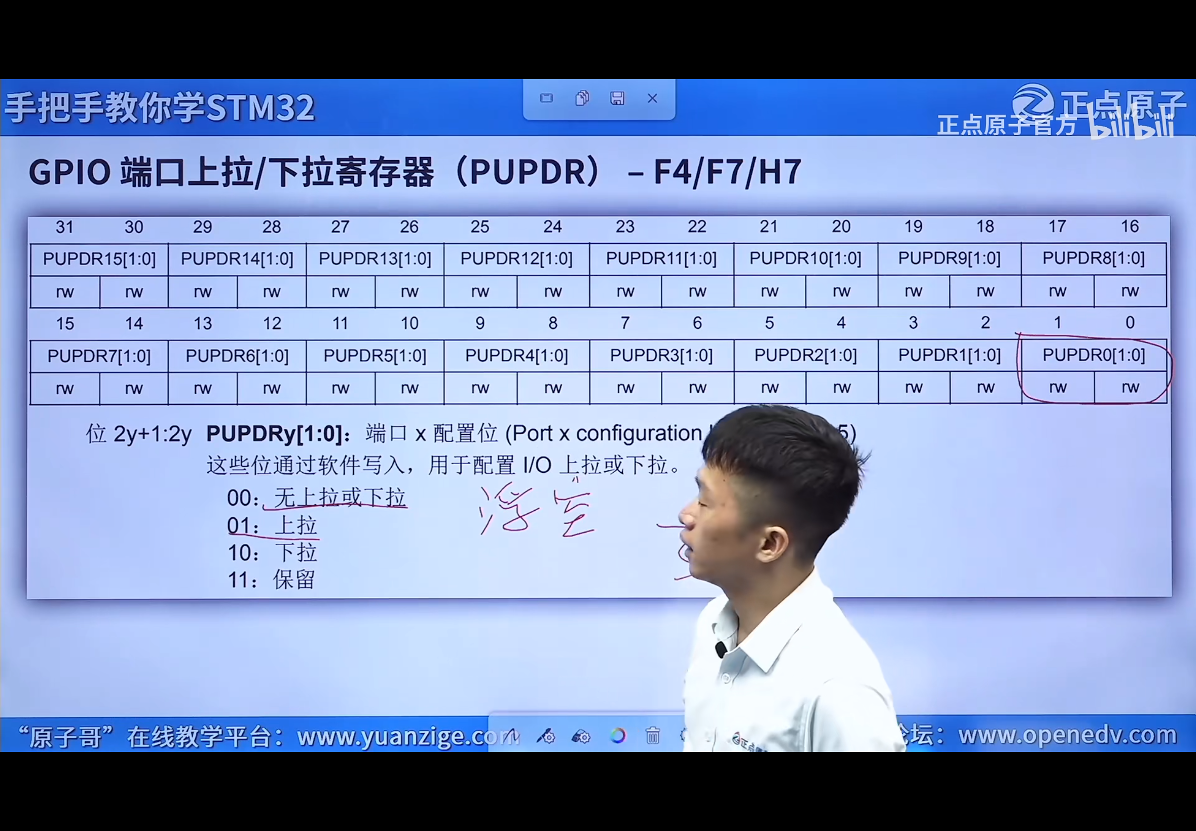 GPIOx_PUPDR:设置上下拉电阻