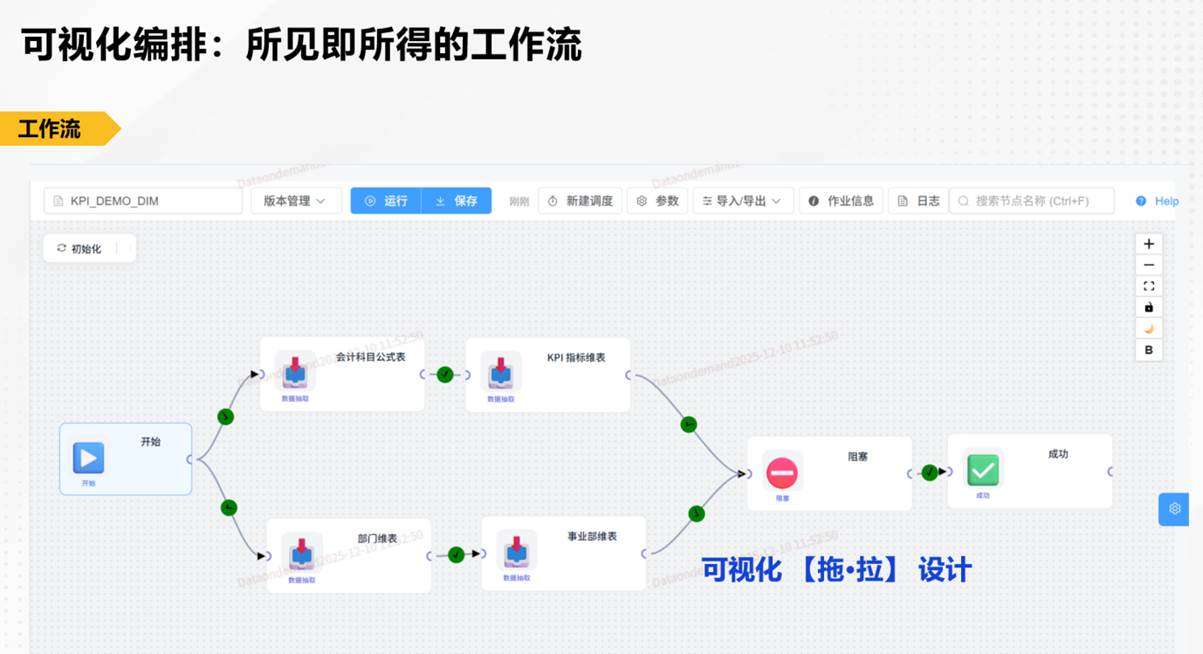 德昂DemandETL凭借低代码、可视化设计,让非技术人员也能通过拖拽完成数据流程搭建。其涵盖数据连接、转换、排程、监控全链路服务,部署仅需 2 小时,相比传统 ETL 工具 3 天的部署周期,效率大幅提升,还支持版本管理与血缘追踪,保障数据安全合规。