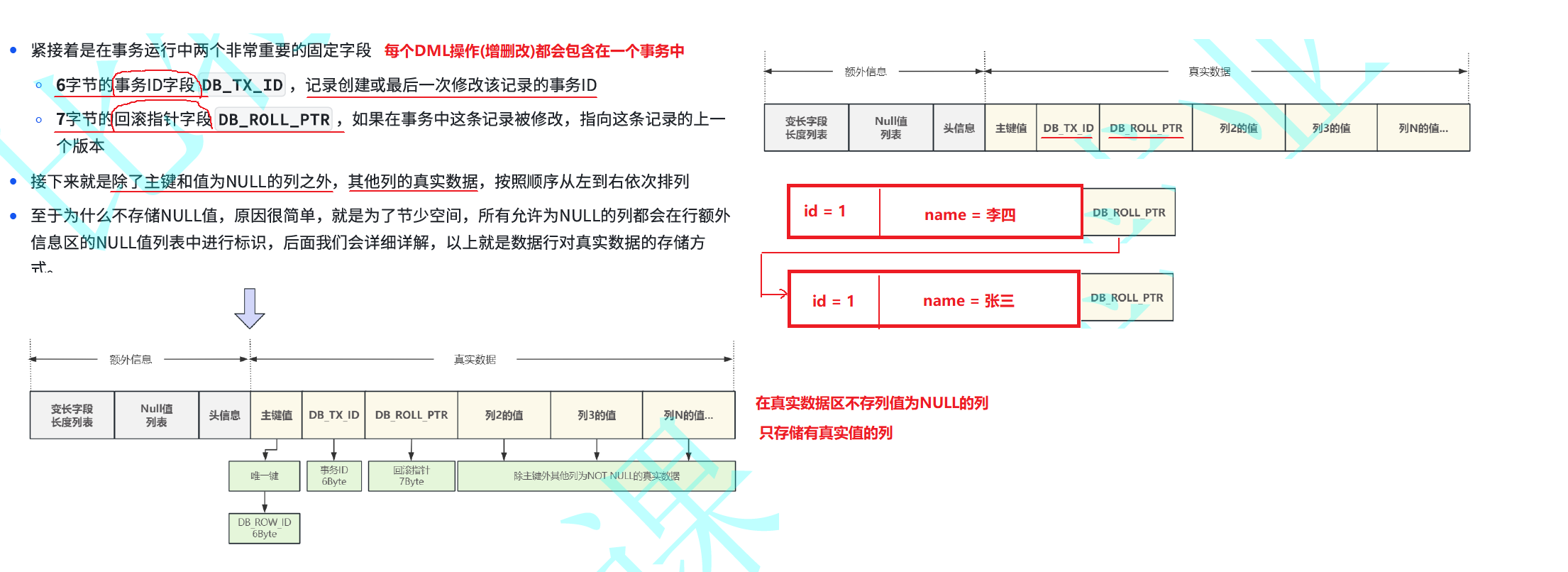 - 定义 :6 字节的隐藏列,记录了最后一次修改该行数据的事务 ID。