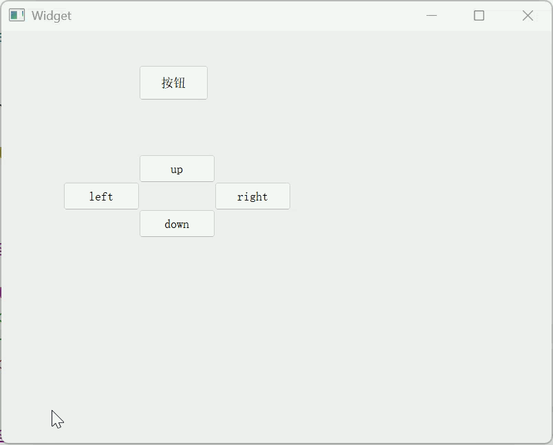 在界面中拖五个按钮,五个按钮的 objectName 分别为 pushButton_target , pushButton_up , pushButton_down , pushButton_left , pushButton_right ,五个按钮的初始位置和大小都随意.