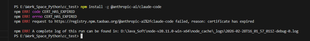 4.1 执行npm install -g @anthropic-ai/claude-code命令报错: