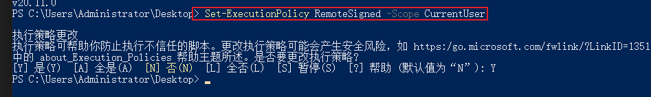 Y确认更改。 - 关闭并重新打开普通 PowerShell 窗口。