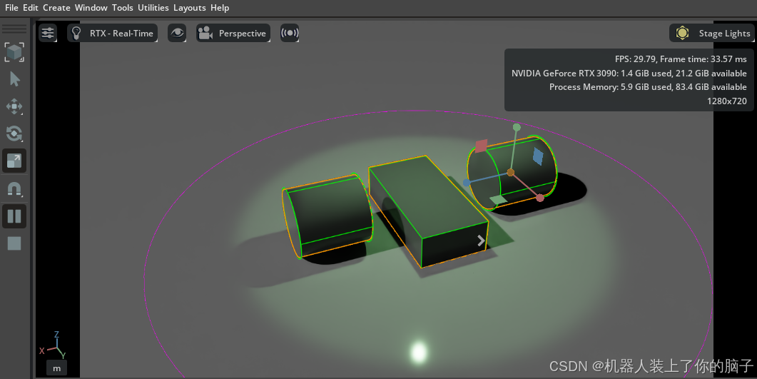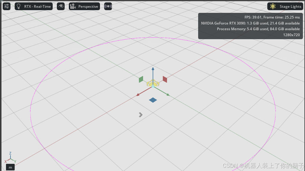 **场景单位 (Stage Units):**Isaac Sim 2022.1之前的版本使用厘米作为单位,但现在的默认单位是米 (meters)。然而,Omniverse Kit的默认单位仍为厘米。如果发现USD单位似乎偏移了 100 倍,请留意这一点;