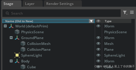 目前为止,添加的立方体和圆柱体仅作为**视觉原始单元(Visual Prims)**存在,尚未附加任何物理或碰撞属性。当你按下 Play(播放)开始模拟并施加重力时,这些物体不会移动,因为它们不受物理系统影响。