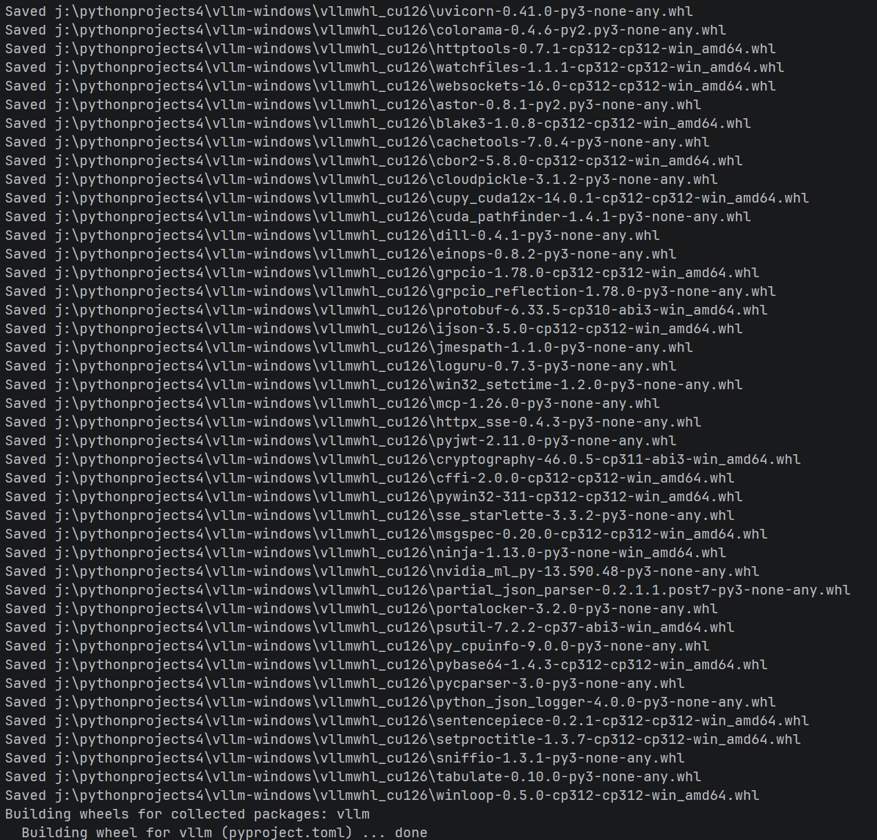 pip wheel . --no-build-isolation -w J:\PythonProjects4\vllm-windows\vllmwhl_cu126\