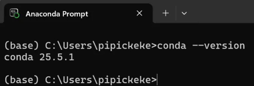 - 完成安装后,打开 Anaconda Prompt(或系统终端)测试