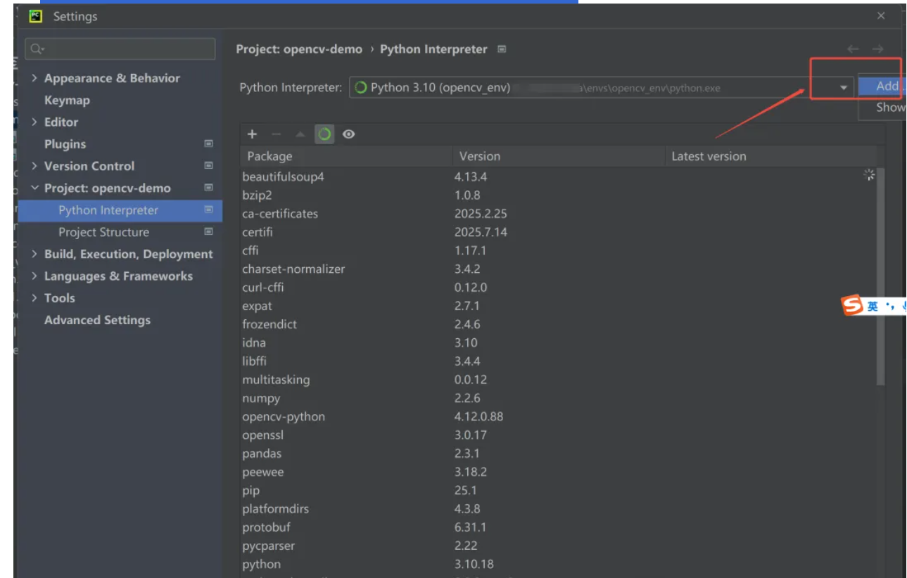 - 下载 opencv所需的包