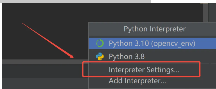 - 点击箭头的齿轮,会有 "Add Python Interpreter",点进去