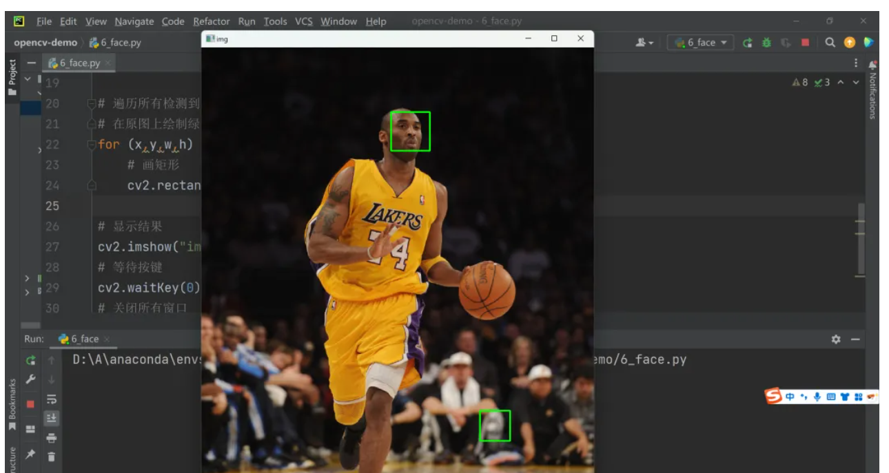 # scaleFactor=1.3:图像缩放比例(1.3表示每次缩小30%)