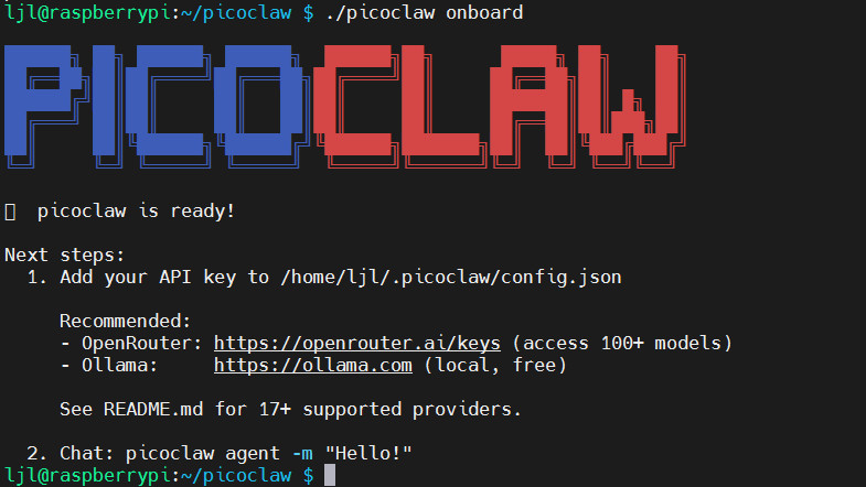 bashmkdir picoclaw && cd picoclaw wget https://github.com/sipeed/picoclaw/releases/latest/download/picoclaw_Linux_arm64.tar.gz tar -xzf picoclaw_Linux_arm64.tar.gz picoclaw onboard -