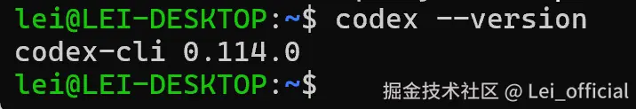 检查安装结果,注意 Codex 需要 Node版本 >= 18: