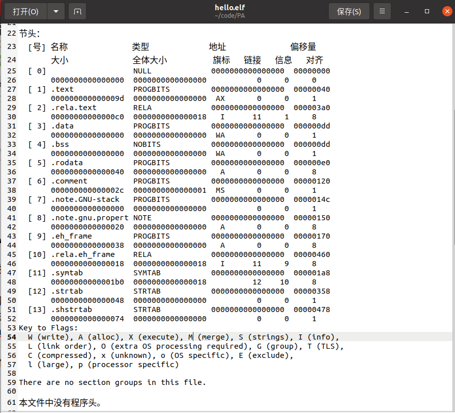 5)hello.elf : 用readelf读取hello.o得到的ELF格式信息