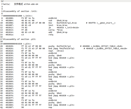 | hello1.elf | 用readelf读取hello得到的ELF格式信息 |