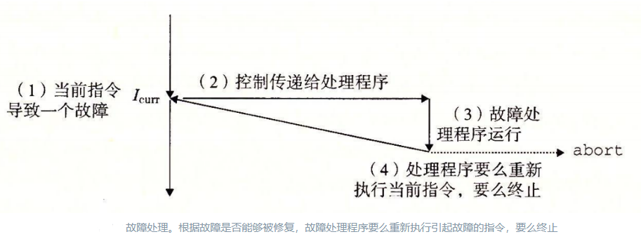 过程:在进程执行期间,可能发生异常或接收信号。例如,按下 Ctrl-C(SIGINT)会导致进程终止,按下 Ctrl-Z(SIGTSTP)会挂起进程。缺页故障(Page Fault)会触发内核加载缺失的页面。