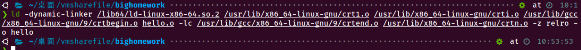 过程:链接器(ld)将多个目标文件(如 hello.o)和所需的库文件(如 libc.a 或 libc.so)进行整合。主要工作包括: