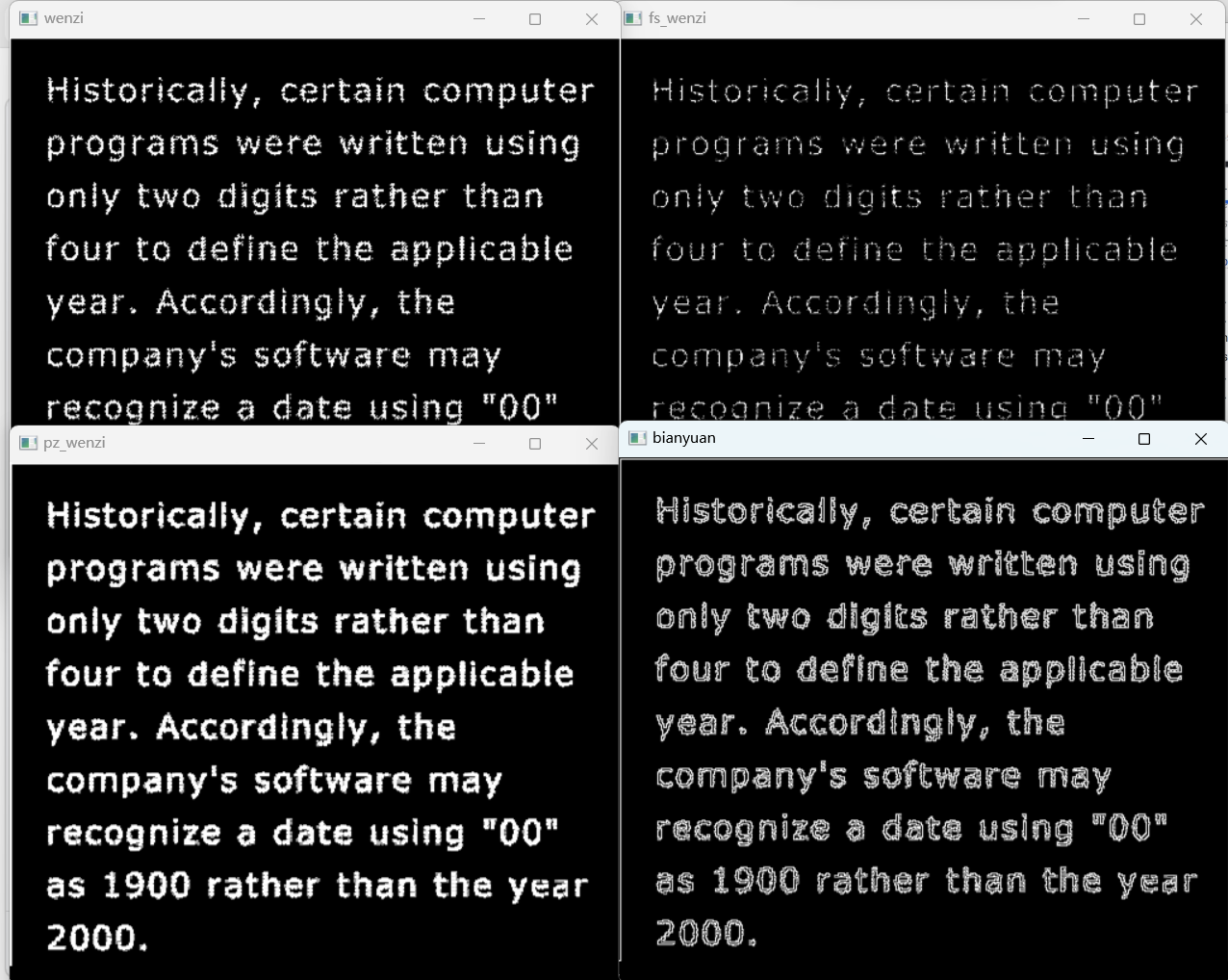 cv2.imshow('Dilated Text', wenzi_dilate)
