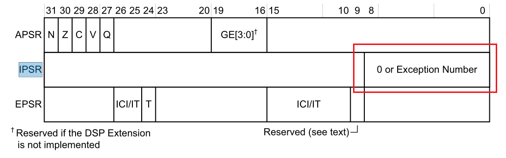 然后是 IPSR(Interrupt PSR),占 bit0 ~ bit8