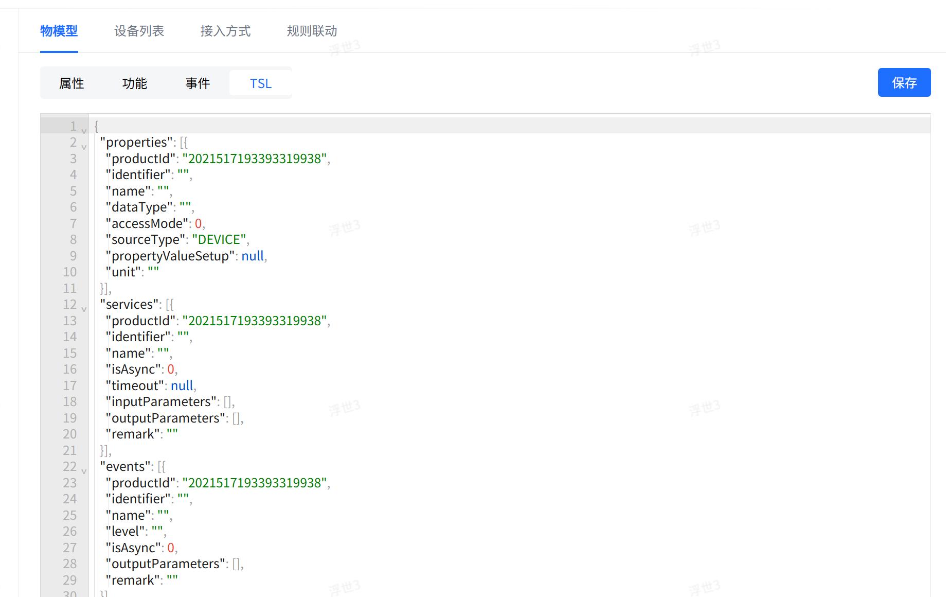 - 编辑JSON格式的TSL内容