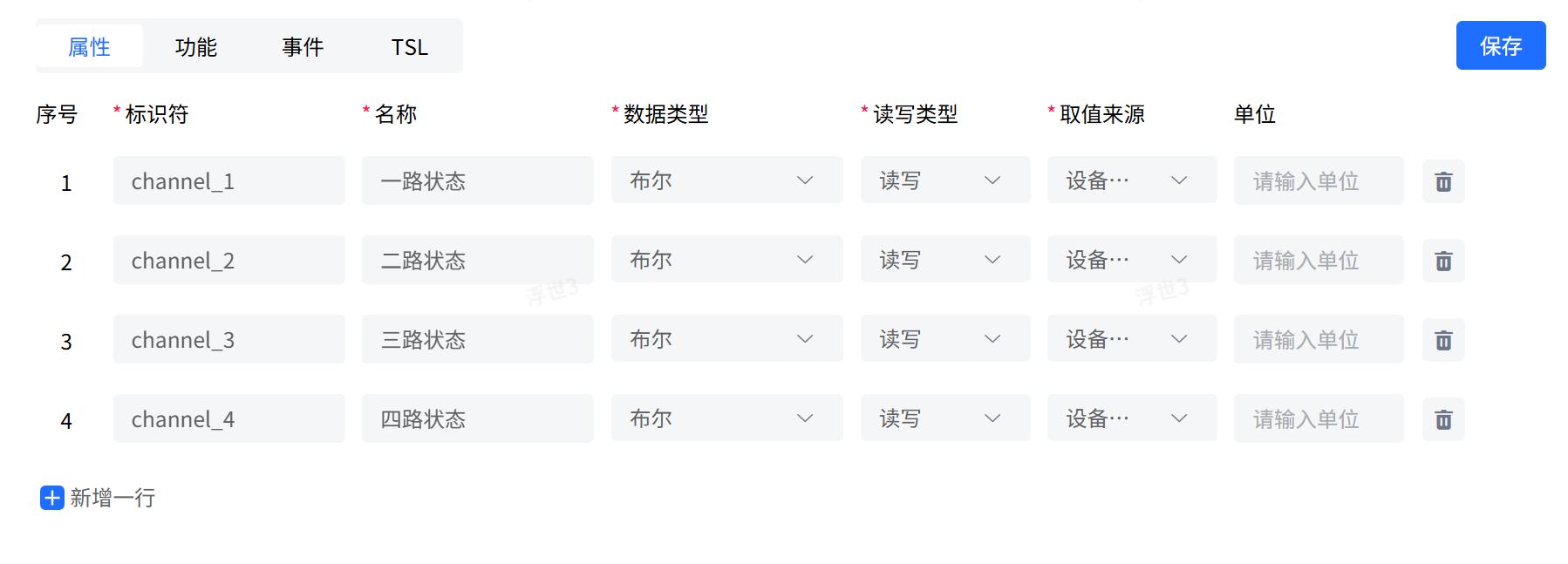 - 进入物模型的TSL标签页