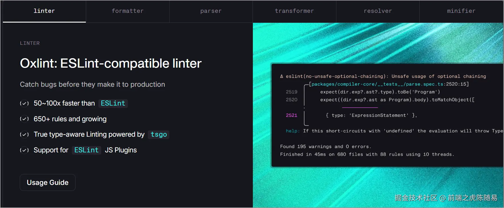 允许 JavaScript 插件以最小的序列化开销访问 Rust 生成的 AST,弥合了 Rust 内部与 JS 插件代码之间的性能差距。