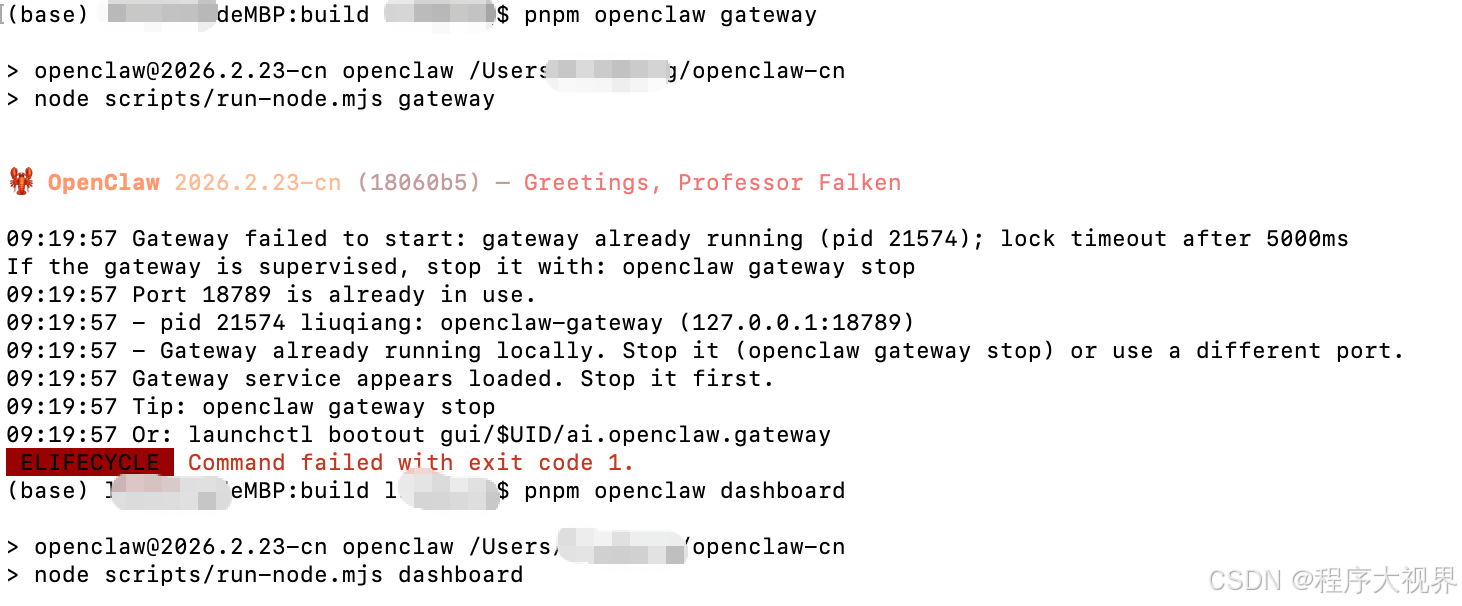 启动open claw网关,如果之前已经启动再次执行启动会报如下提示,此提示可忽略直接执行打开管理界面的命令即可: