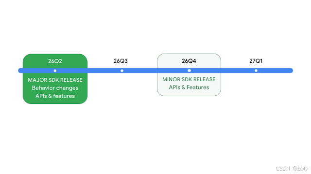 时间节点 :Platform Stability 计划在 2026 年 3 月达成,之后可以正式将 targetSdk 设为 37 并发布到 Google Play 收集反馈。Google Play 强制要求的截止日期是 2027 年 8 月。