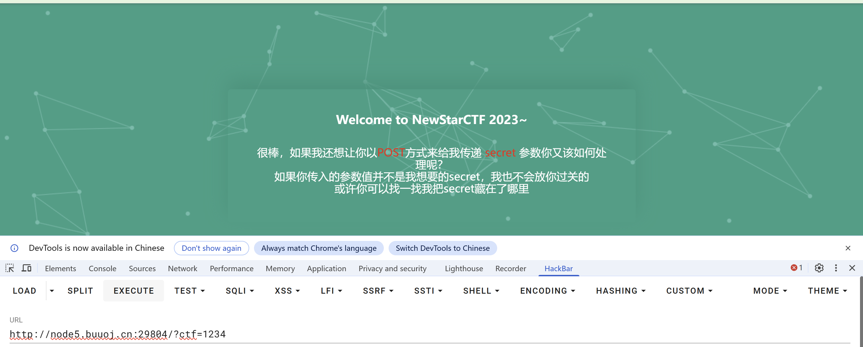 根据提示,使用POST方式传递secret参数,但是没有反应