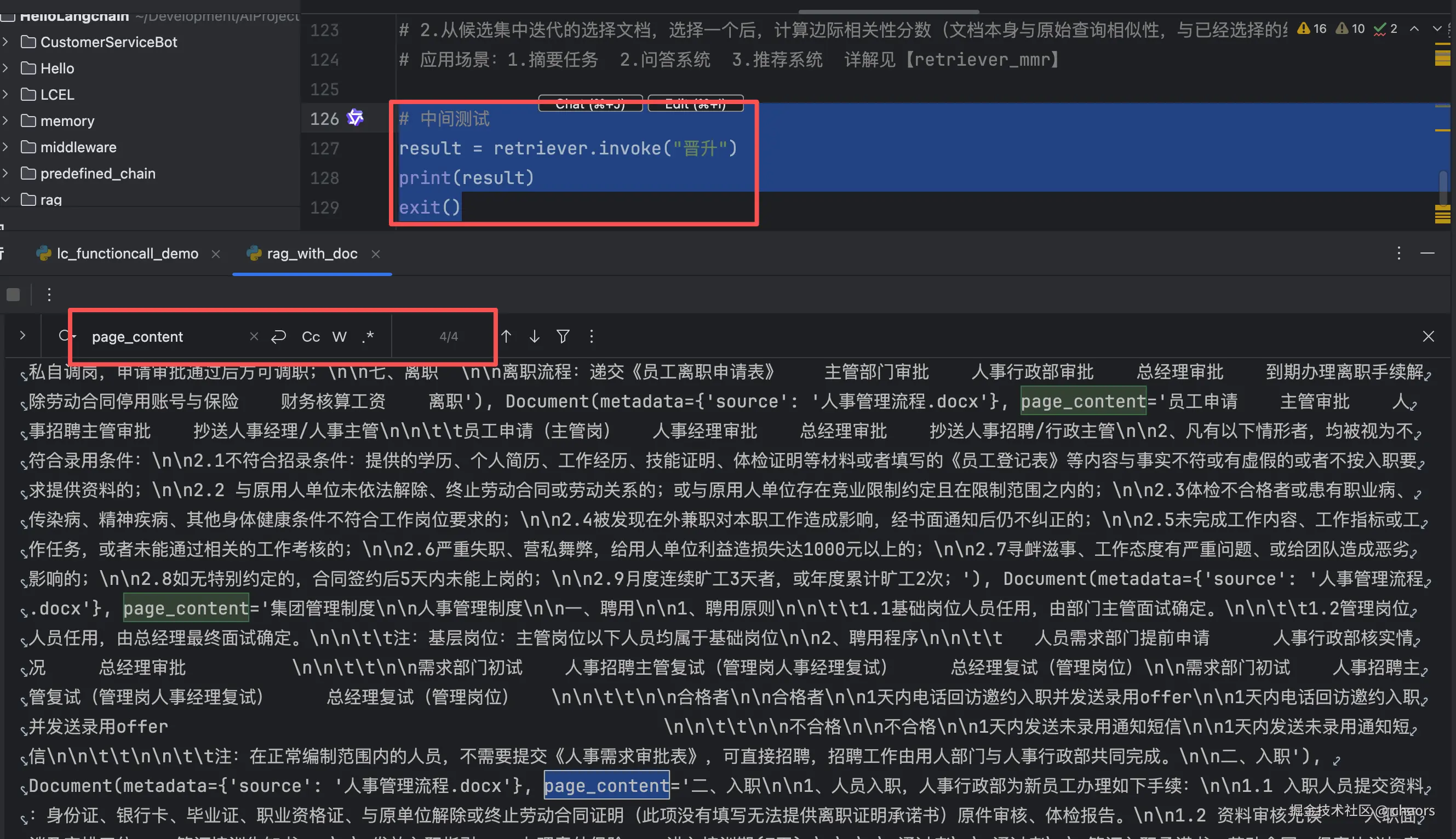 可以看到以上代码基本相同,没什么差别。但是这里要注意:在Langchain中,操作的目标都是Document对象。