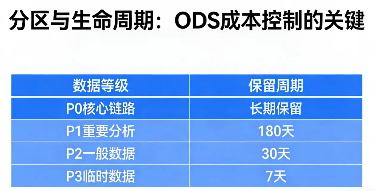 三、分区与生命周期:ODS 成本控制的关键