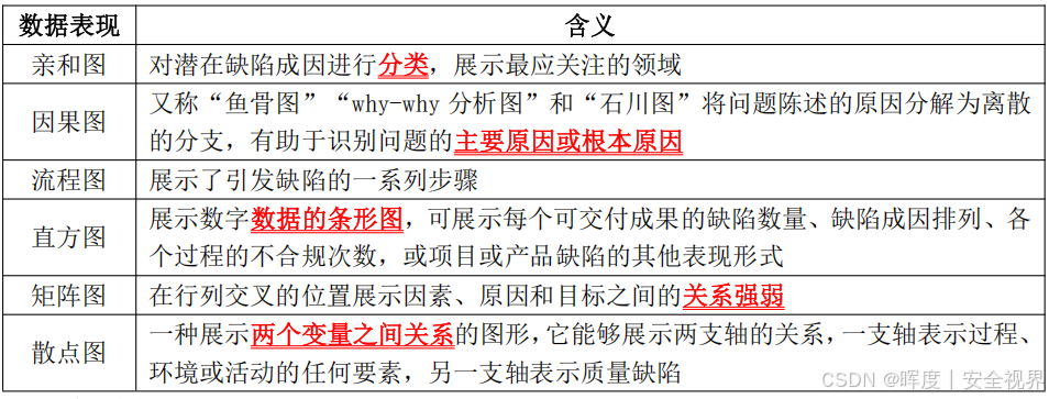 - 做什么 :以图形、数据或文字形式,整理并输出项目质量相关信息。