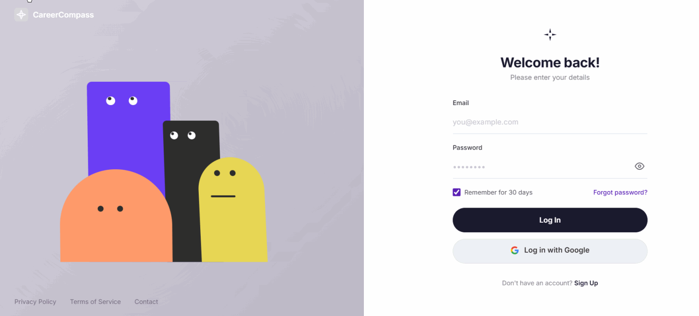 - 右侧面板:登录表单(邮箱、密码、登录按钮、Google 登录)