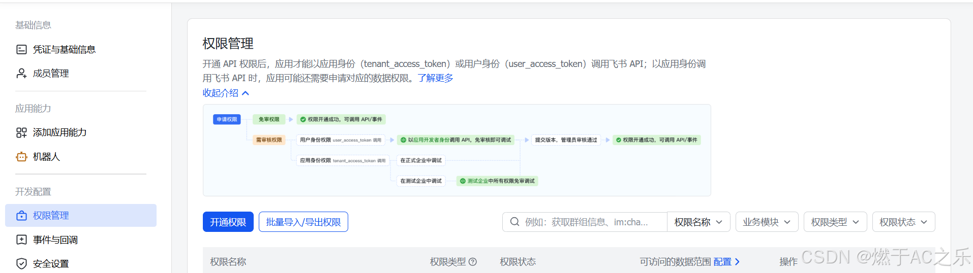 点击【权限管理】:添加消息,文档相关权限。